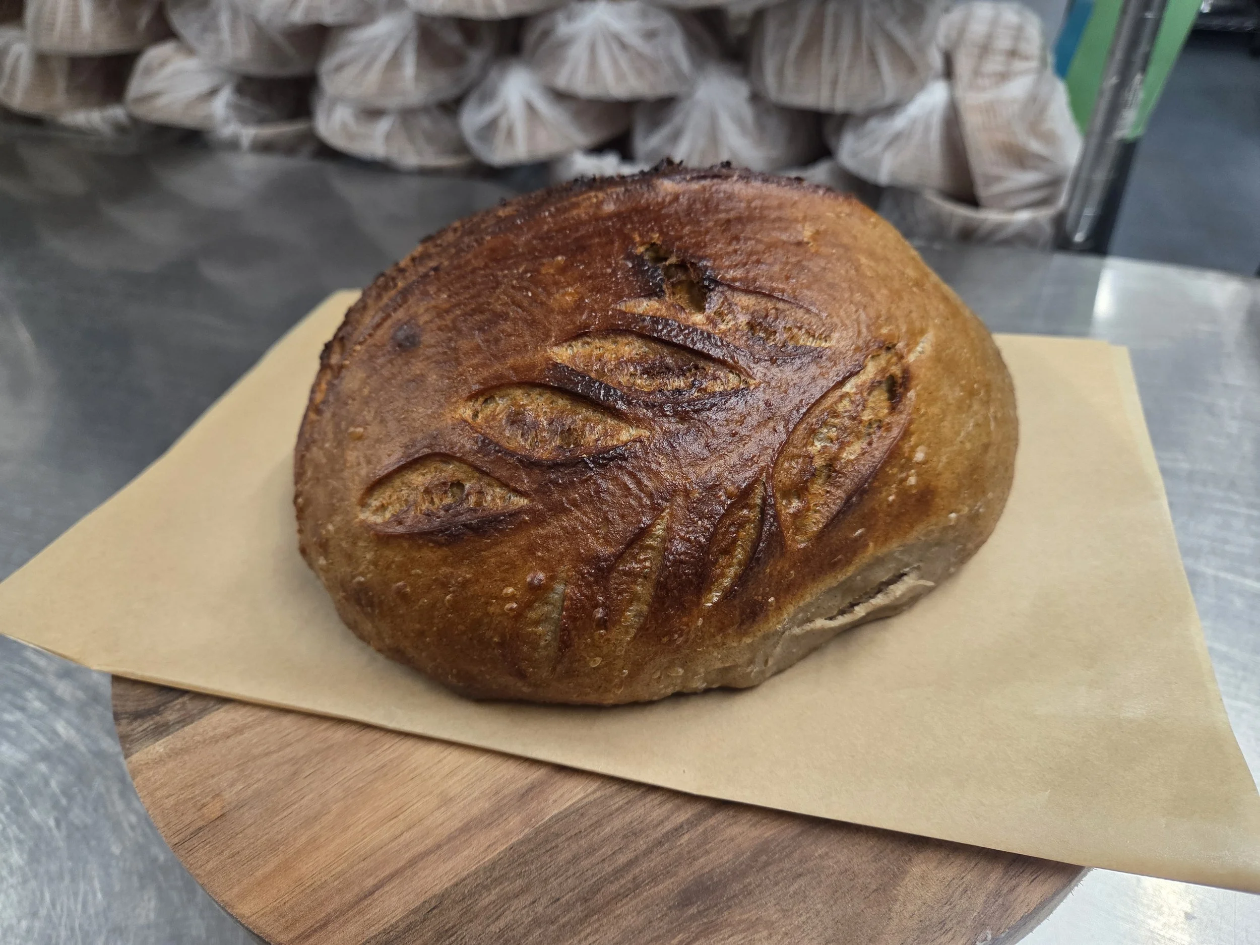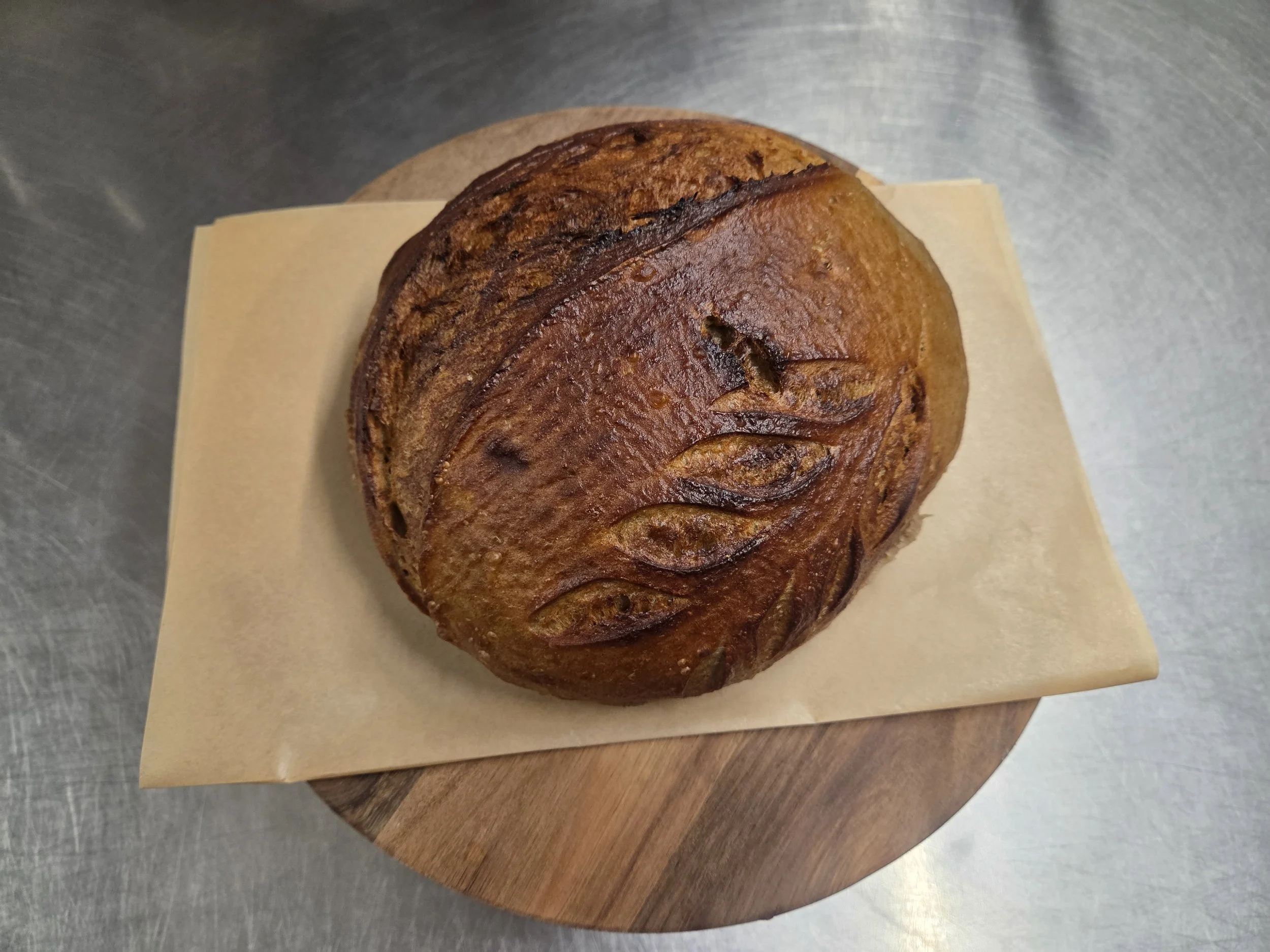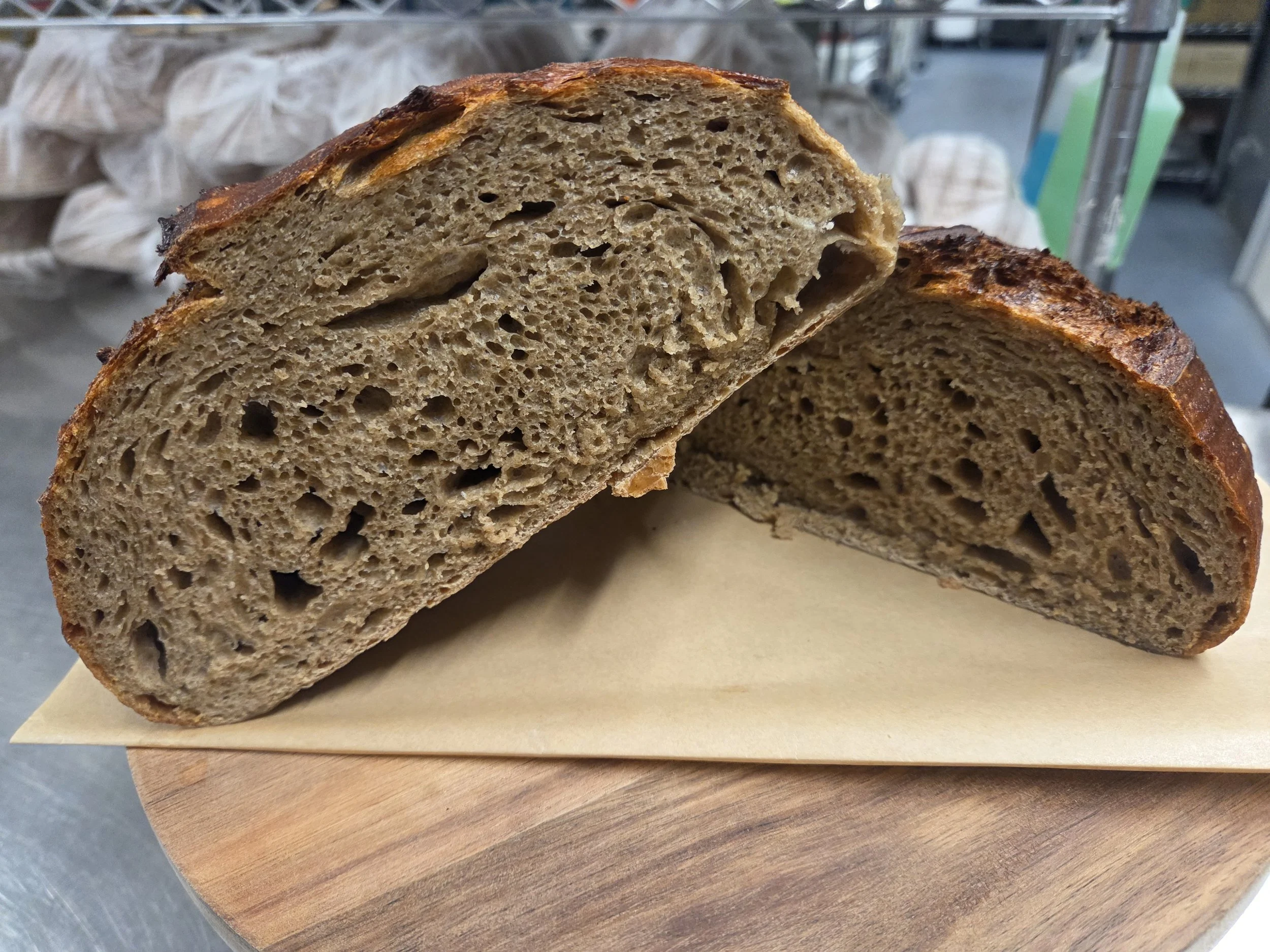 Rye sourdough is a hearty, old-world loaf with a rich, earthy flavor and a tender, slightly dense crumb. Made with rye flour and naturally fermented, it has a deeper, more complex taste than classic white sourdough, with a gentle tang and subtle notes of toasted grain. Perfect for sandwiches, toast, or slathered with good butter.